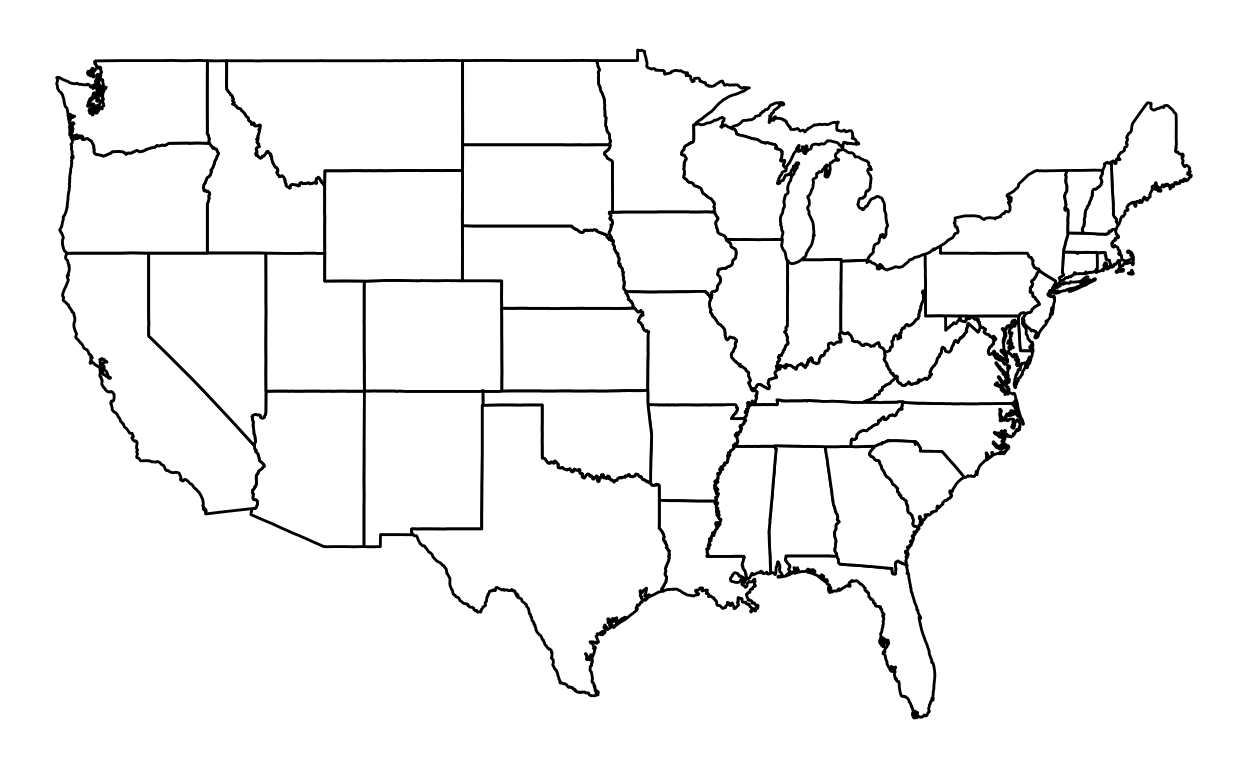 geom_polygon(data = usa_states, fill = "white", color = "black") +